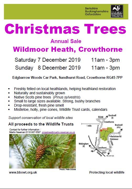 The local Wildlife Trust (BBOWT) is having its annual Christmas tree sale on Saturday 7 and Sunday 8 December.