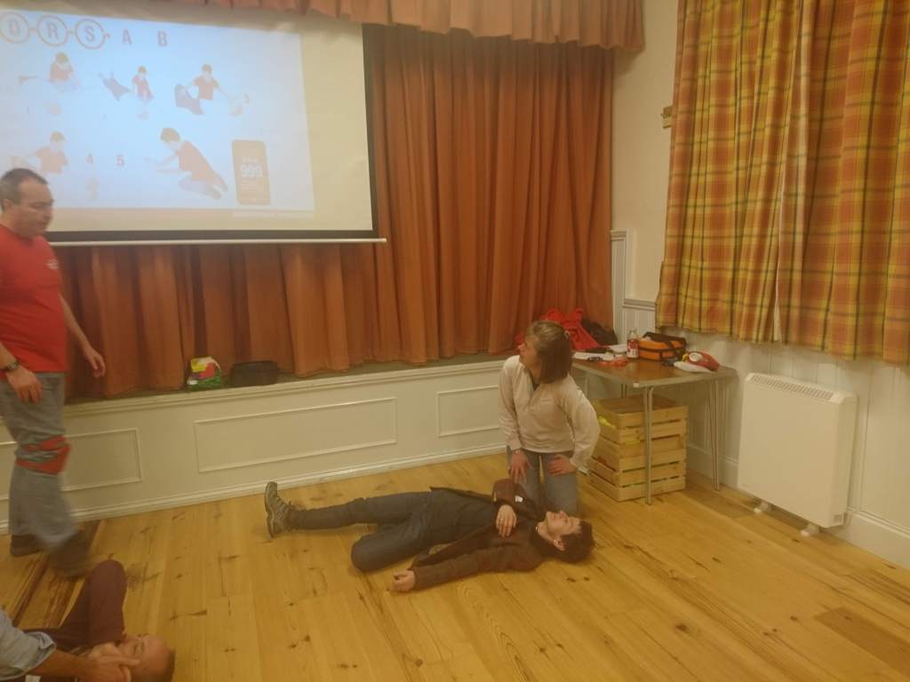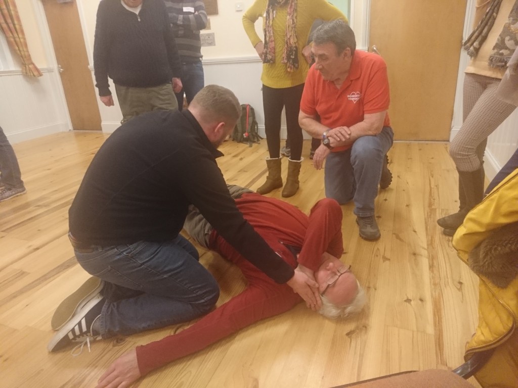 Both training sessions took place in rural settings, the first at Hermitage Village Hall, on a dark January evening. All delegates had very positive feedback and rated the training as excellent or good. Below you can view a film about the correct actions to take if you think you’ve found someone unconscious and how to check so you DON’T get a smack in the face!