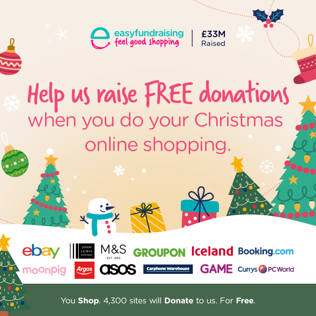 We also registered with Easy Fundraising which gives commission from a variety of online shops, you just need to add it to your browser and it will remind you to enter through the Easy Fundraising platform to earn commission for the charity on any purchases, again there is no extra cost to you. Details can be found below.