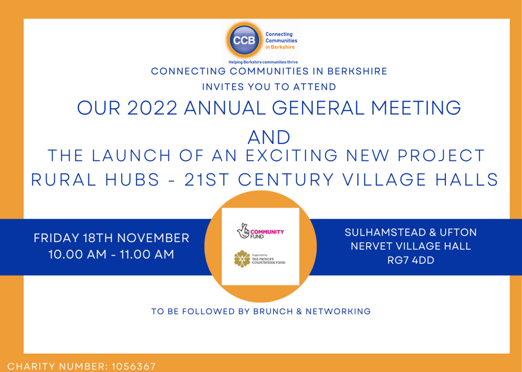 We would love for you to come to our 2022 AGM to hear about an exciting new project we are launching in Berkshire – Rural Hubs, 21st Century Village Halls.