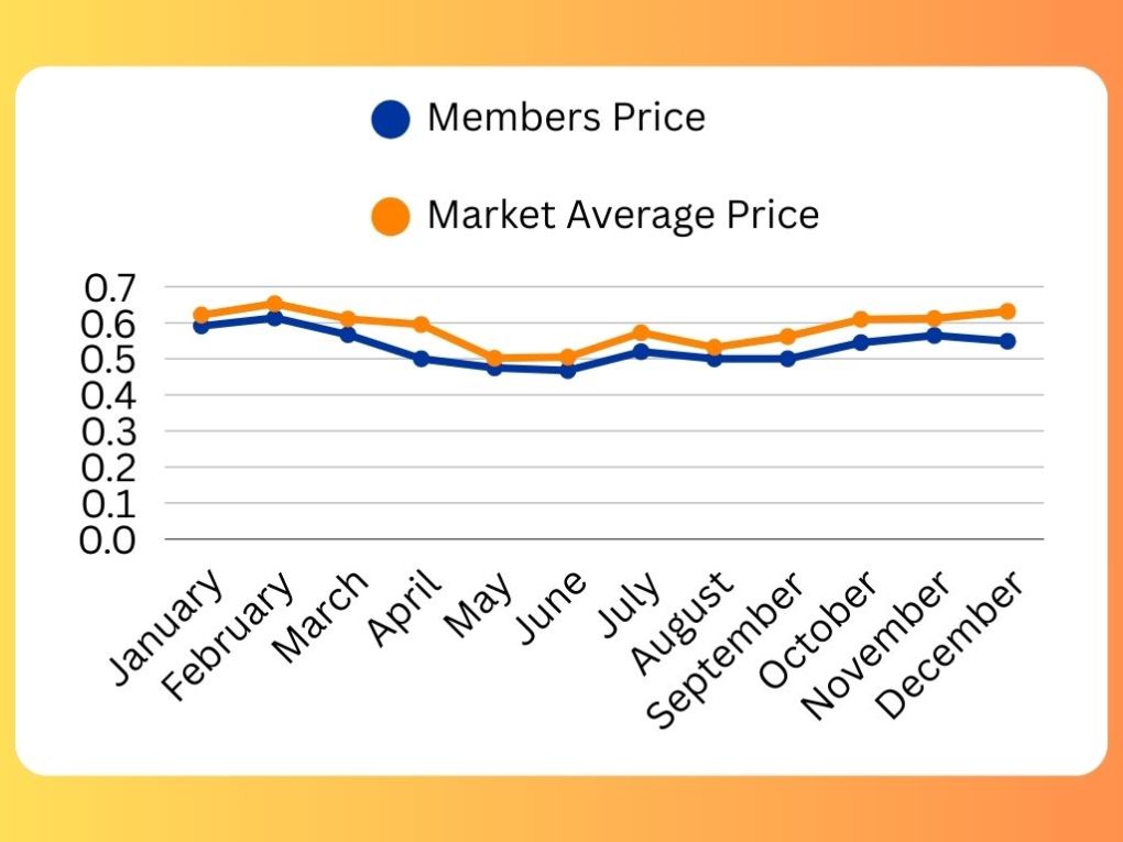 | Month (delivered in) | Members’ Price | Market Average Price |